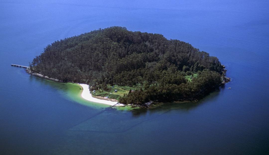 The island of Tambo (in Galician, Illa de Tambo) is a Galician island in the province of Pontevedra, located in the middle of the Ría de Pontevedra, towards its final part, between the town of Marín and the municipality of Poyo. It has an area of 28 hectares and reaches an altitude of 80 metres. It is oval-shaped and has a typical pyramidal form completely covered with trees, especially eucalyptus. To the south, there is a small peninsula (called O Tenlo) that appears almost like an island when viewed from the land and features an old lighthouse (lighthouse of Tenlo Chico) commissioned in 1916, which was first lit on 30 November 1922. The lighthouse emits white light with equidistant flashes and has a range of no less than 15 nautical miles, standing at 38 metres above low water. Tambo has two beaches connected at the northern part of the island and three small jetties.